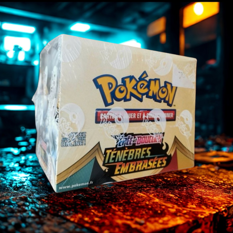 Le display Ténèbres Embrasées de l’extension Épée et Bouclier est un excellent choix pour les amateurs de Pokémon sombres et puissants. Composé de 36 boosters, chacun contenant 10 cartes, ce coffret propose un total de 360 cartes pour développer votre collection ou renforcer vos stratégies en jeu. Cette extension introduit notamment Dracaufeu VMAX, l’une des cartes les plus convoitées de la série.